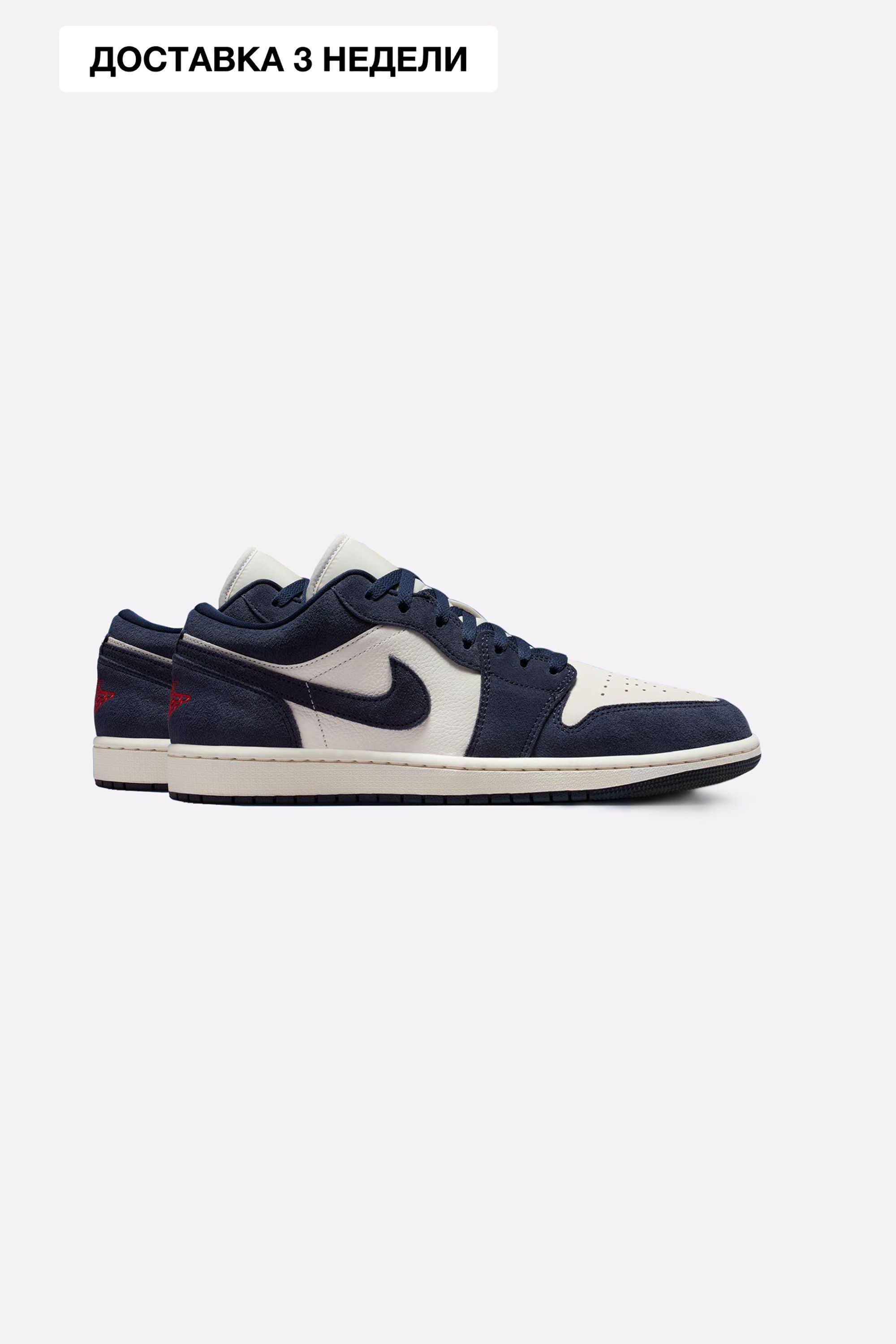 Кроссовки Air Jordan 1 Low SE в синей расцветке от Jordan Brand. Верх пары выполнен из сочетания натуральной кожи и текстиля с акцентными деталями, подчёркивающими специальную версию модели. Контрастные панели и фирменный Swoosh по бокам формируют узнаваемый силуэт, а низкий профиль делает модель удобной для повседневной носки.